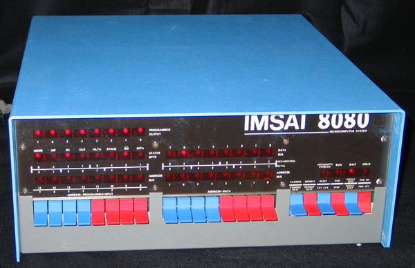 The IMSAI came with 256 bytes of memory. Please note that that is not kilobytes, megabytes or gigabytes. It had no ROM and a bootstrap program had to be keyed in from the front panel switches every time you powered it on. Above is a picture of one.